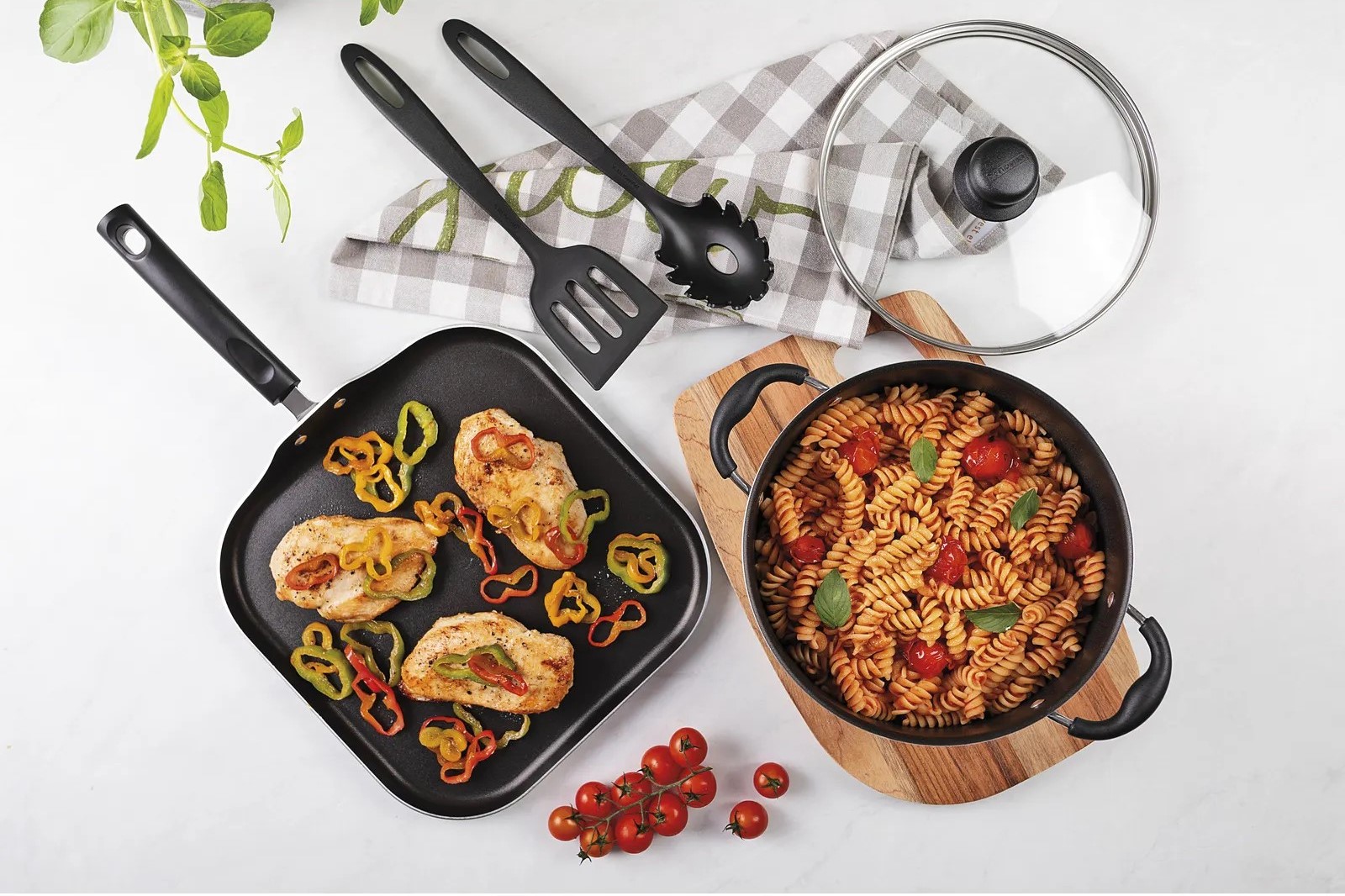 Ambas líneas de Tramontina, Primeware y Turim, están diseñadas para combinar estilo, durabilidad y practicidad en la cocina. Fabricadas en aluminio con cocción rápida y uniforme, cuentan con antiadherente Starflon Max libre de PFOA, garantizando uso seguro, fácil limpieza y larga vida útil. Primeware destaca por su diseño moderno y mayor capacidad; Turim ofrece una opción práctica y funcional con tapas de vidrio templado.