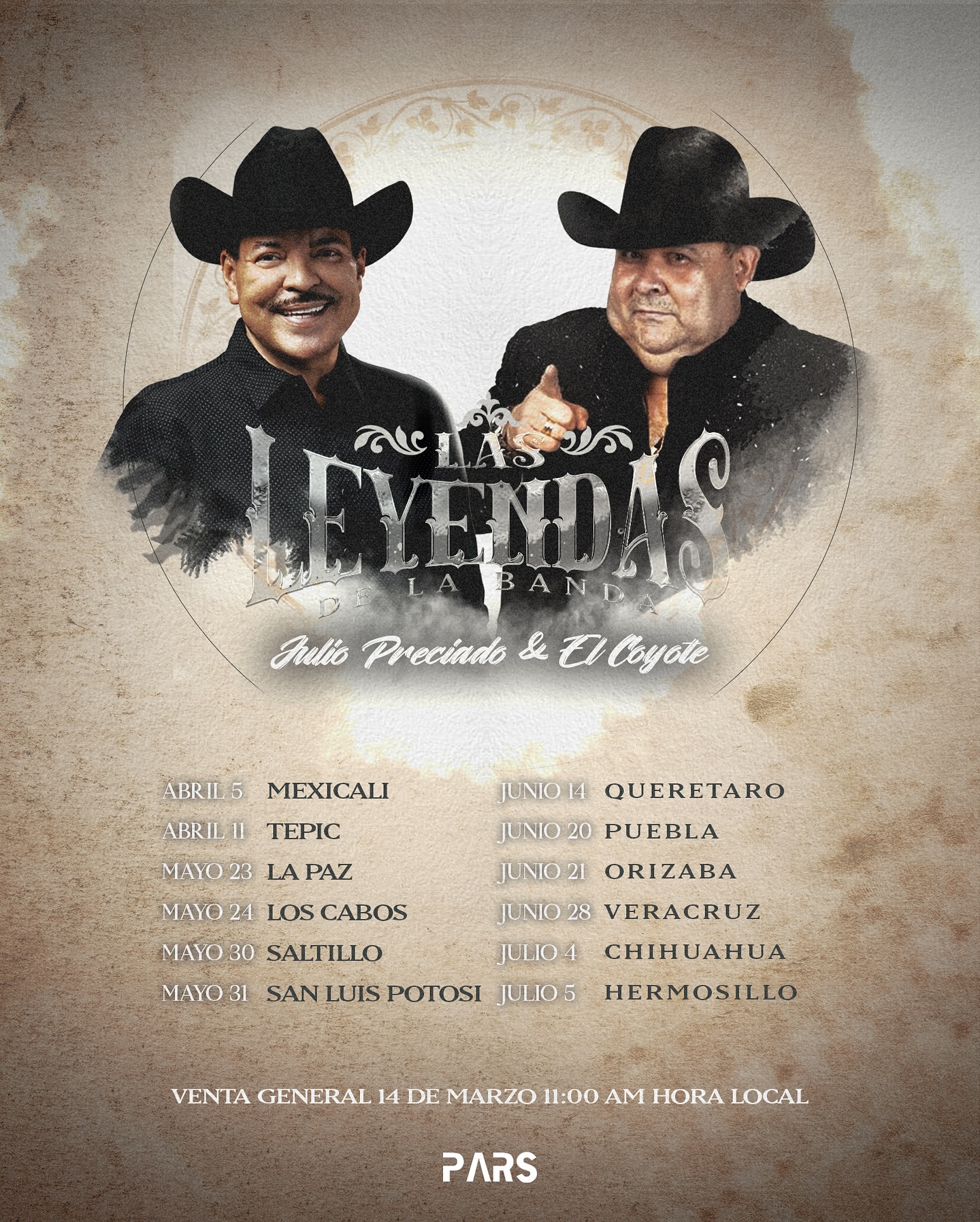 Dos de las voces más emblemáticas del regional mexicano, Julio Preciado y El Coyote, se unirán en una gira nacional que promete ser uno de los eventos musicales más destacados de 2025. Bajo la organización de PARS Productions, reconocida empresa con una amplia trayectoria en la producción de eventos masivos en México, este tour llevará a los legendarios intérpretes a escenarios emblemáticos del país.